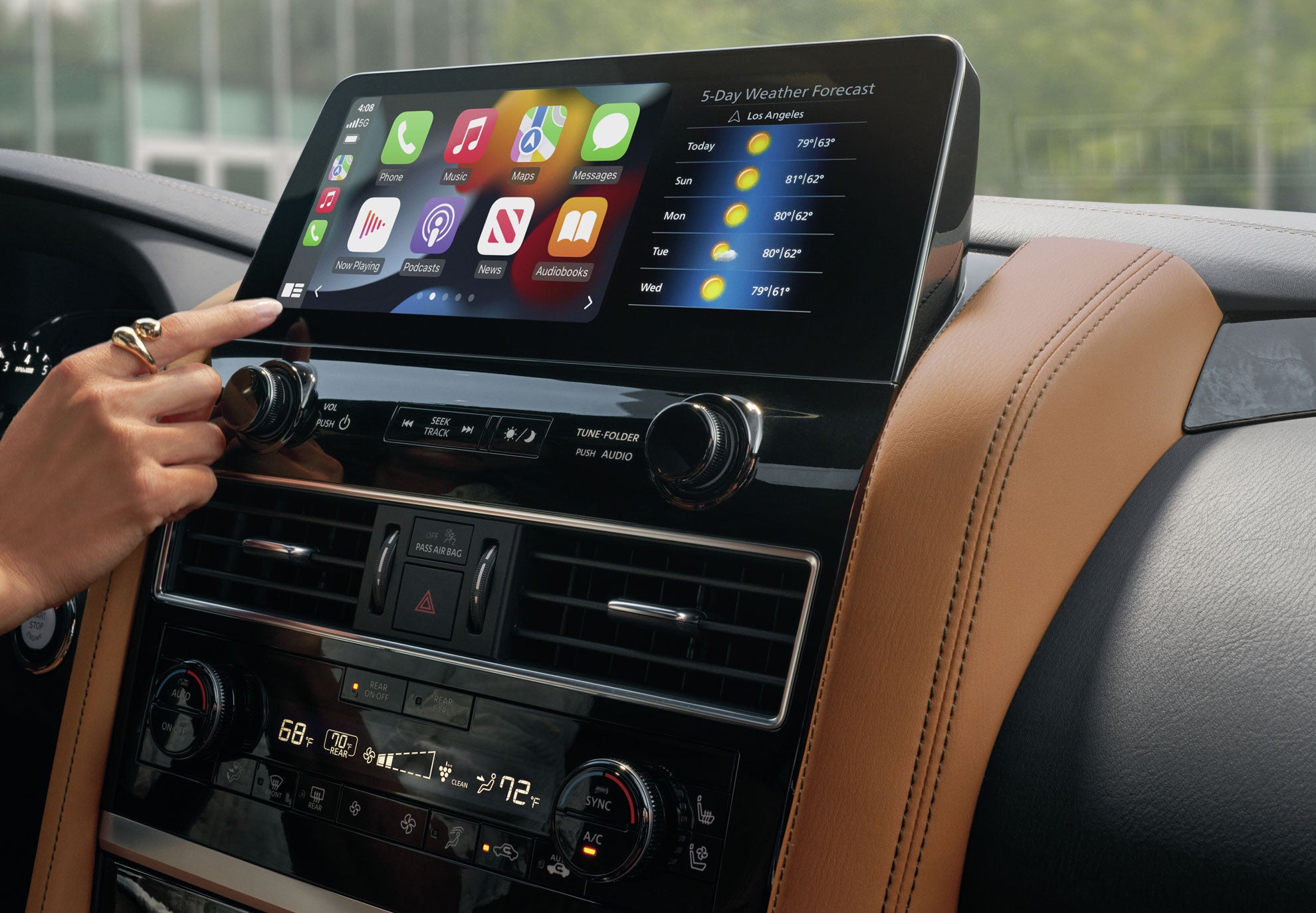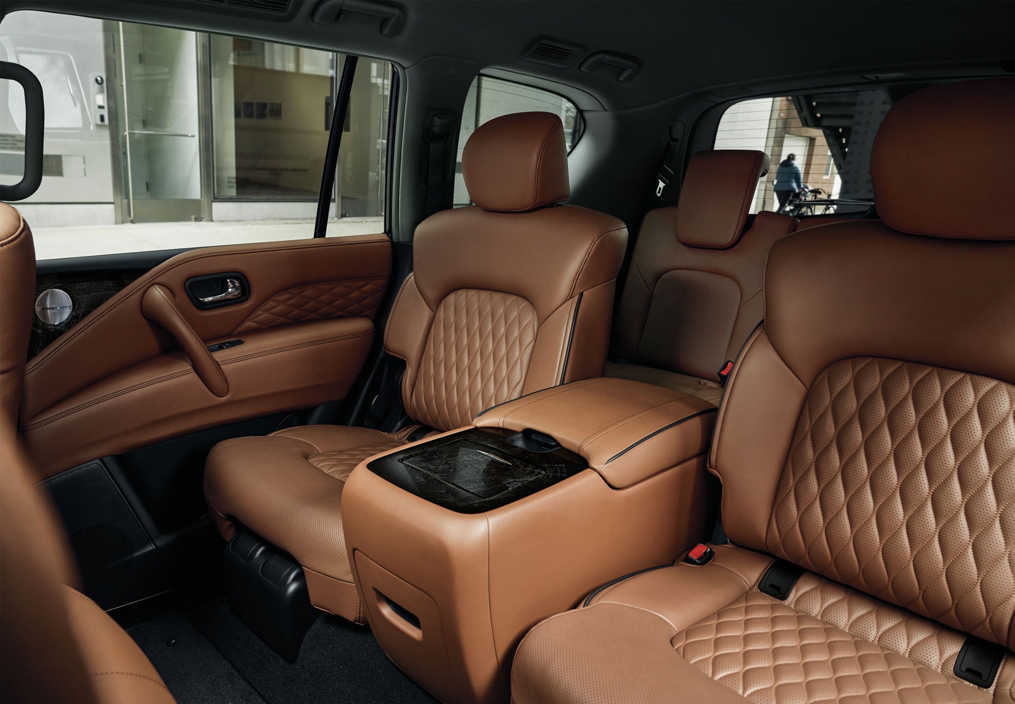 A fantastic convenience and comfort experience awaits you behind the wheel of the 2023 INFINITI QX80. The Luxe comes with a power-sliding tinted glass moonroof, tri-zone automatic climate control, a wireless charger, leather seating with heated front seats, and a heated steering wheel. A Bose premium sound system is standard, as is an INFINITI InTouch 12.3-inch color touchscreen display with navigation, wireless Apple CarPlay, and an available Wi-Fi hotspot.