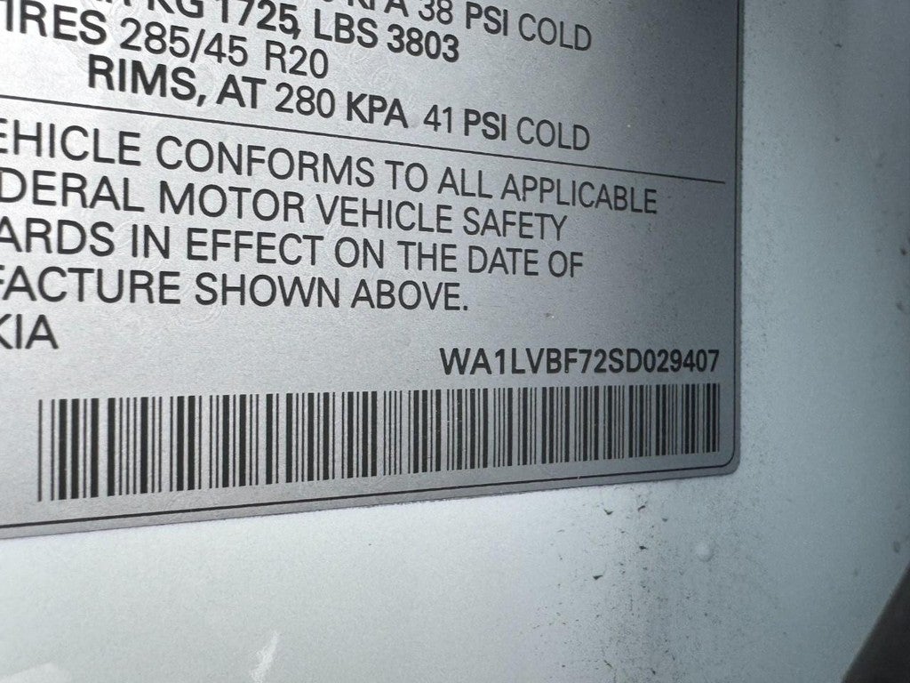 Audi Certified pre-owned Certified, 10 Speakers, 3rd row seats: bench, 4-Wheel Disc Brakes, ABS brakes, Air Conditioning, Alloy wheels, AM/FM radio: SiriusXM w/360L, Audi Beam Rings, Audi Guard All-Weather Mats, Auto High-beam Headlights, Auto-dimming door mirrors, Auto-dimming Rear-View mirror, Automatic temperature control, Bang & Olufsen Premium Sound System with 3D Sound, Brake assist, Bumpers: body-color, Comfort Adaptive Air Suspension, Compass, Control Buttons in Gloss Black with Haptic Feedback, Convenience Package, Delay-off headlights, Driver door bin, Driver vanity mirror, Dual front impact airbags, Dual front side impact airbags, Dual-Pane Acoustic Glass For Side Windows, Electronic Stability Control, Emergency communication system: Audi connect CARE, Executive Plus Package, Exterior Parking Camera Rear, Four wheel independent suspension, Four-Zone Automatic Climate Control, Front anti-roll bar, Front Bucket Seats, Front Center Armrest, Front dual zone A/C, Front fog lights, Front reading lights, Front Seats with Ventilation, Fully automatic headlights, Garage door transmitter: HomeLink, Genuine wood door panel insert, Heated door mirrors, Heated Front Bucket Seats, Heated front seats, Heated Rear Seats, Heated Steering Wheel, Illuminated Door Sills, Illuminated entry, Leather Seating Surfaces, Leather Shift Knob, Leather steering wheel, LED Interior Lighting Package Plus, Low tire pressure warning, Memory seat, Navigation system: Audi MMI Navigation plus with Touch Response, Occupant sensing airbag, Outside temperature display, Overhead airbag, Overhead console, Panic alarm, Passenger door bin, Passenger vanity mirror, Power door mirrors, Power driver seat, Power Liftgate, Power moonroof: Panoramic, Power passenger seat, Power Soft-Closing Doors, Power steering, Power windows, Premium Plus Package, Privacy Trunk Cover, Radio data system, Radio: Audi Sound System, Rain sensing wipers, Rear air conditioning, Rear anti-roll bar, Rear Door/Side Windows and Tailgate Sunshades, Rear fog lights, Rear reading lights, Rear seat center armrest, Rear side impact airbag, Rear window defroster, Rear window wiper, Reclining 3rd row seat, Remote keyless entry, Security system, Speed control, Speed-sensing steering, Split folding rear seat, Spoiler, Steering wheel memory, Steering wheel mounted audio controls, Tachometer, Telescoping steering wheel, Tilt steering wheel, Top View Camera System, Traction control, Traffic Sign Recognition, Trip computer, Turn signal indicator mirrors, Variably intermittent wipers, Wheels: 19" 5-Arm-Star Design, Wheels: 20" 5-Double-Spoke, Wireless Phone Charging Pad, Wireless Phone Charging Pad Delete.